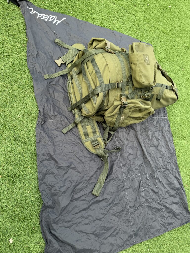 キャンプサイトに到着したら、まずはこのブランケットを取り出しましょう。ポケットからマタドールポケットブランケットを取り出し、広げて地面に敷く。これがソロキャンプの始まりです。広げたブランケットの上に荷物をおろせば、汚れや湿気から荷物を守ることができます。さらに、このブランケットは耐水性があり、地面の湿気や草から荷物をしっかりとガードしてくれます。