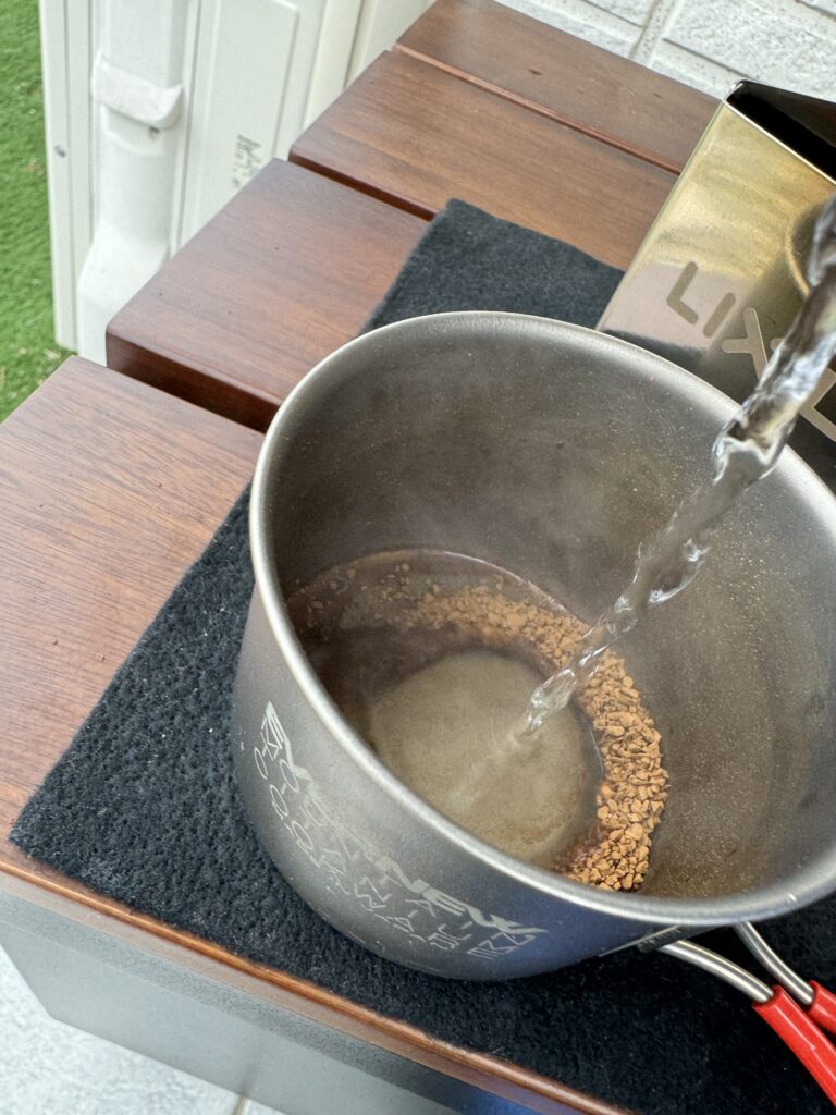 気温などの条件にもよりますが、シェラカップのお湯なら5分前後で沸きますので、今回もワクワクして待ちましょう♬