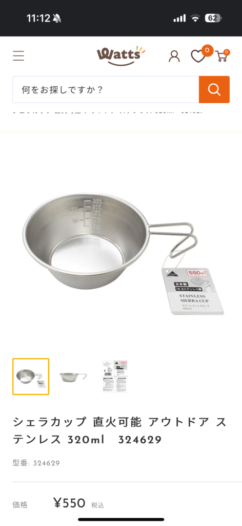 ☆湯沸かしに使うシェラカップ(100円ショップワッツまたは、ご自宅の小さめのやかん)