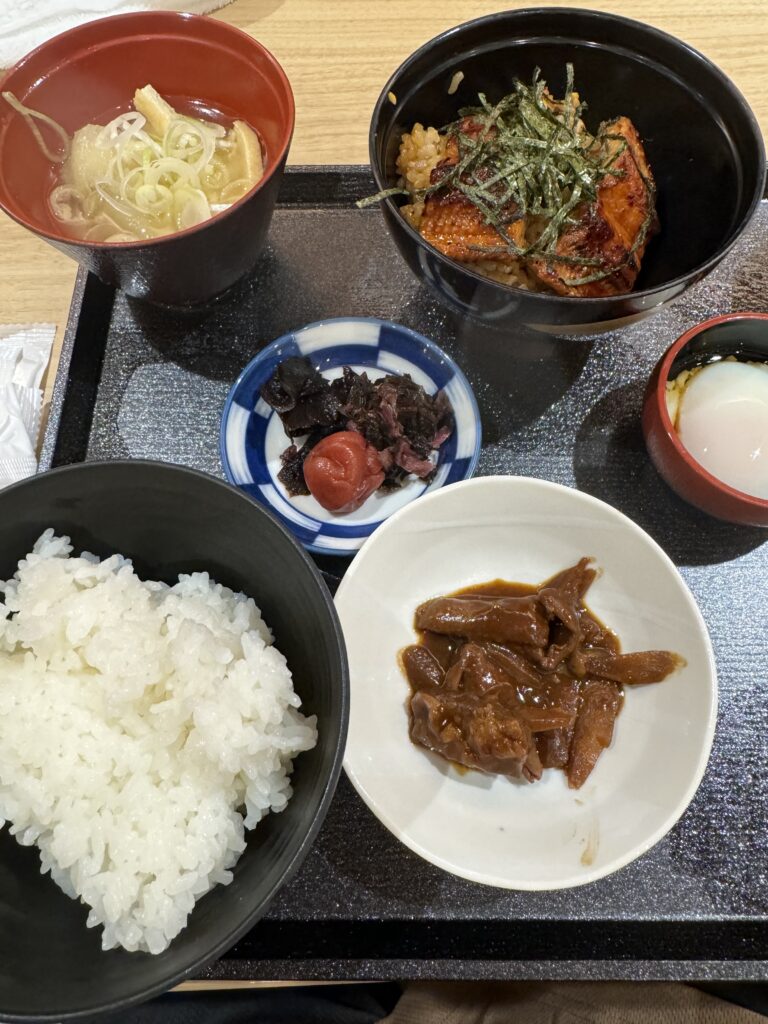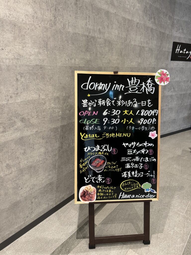 2日目はドーミーイン豊橋の豪華な朝食バイキングからスタート。名物のひつまぶしと愛知のどて煮、そして豊富なデザートを堪能しました。