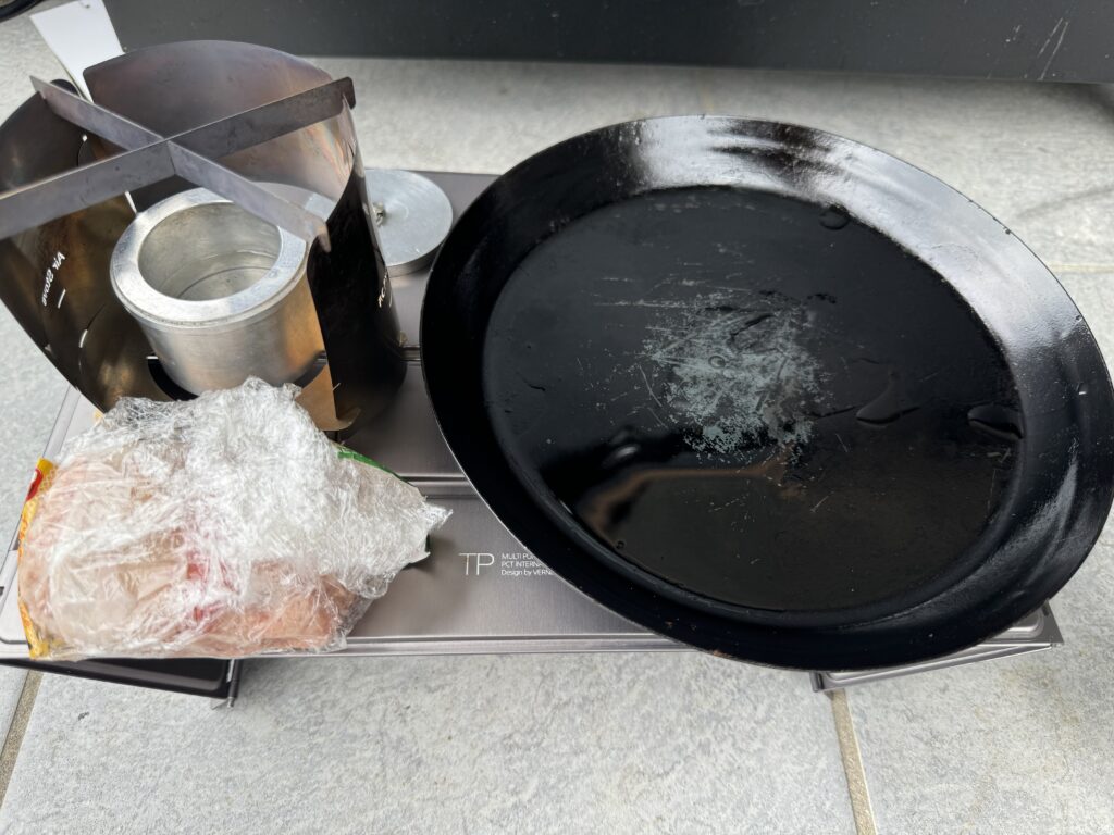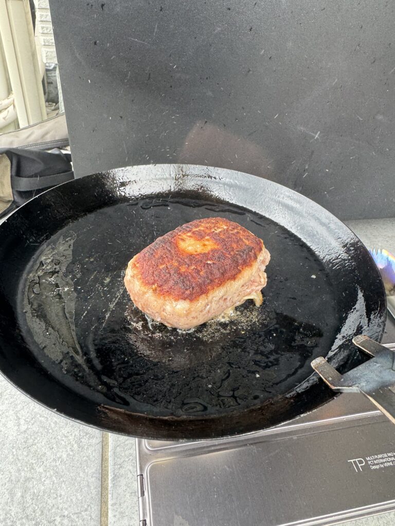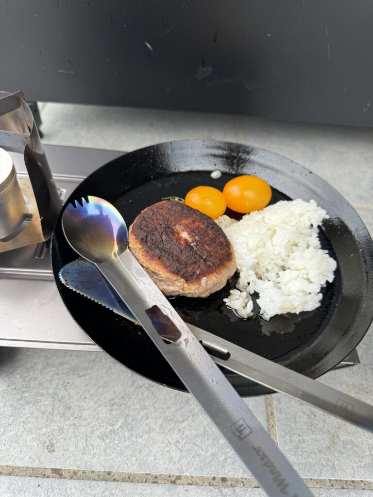 自宅で楽しむ玄関キャンプ!打出しディッシュとアルストで作るハンバーグランチです♩