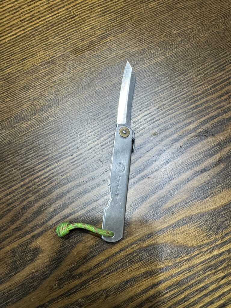 VG10ステンレス素材のロゴスコラボ肥後守ナイフ:錆びにくくてズボラなボクにぴったり!です!