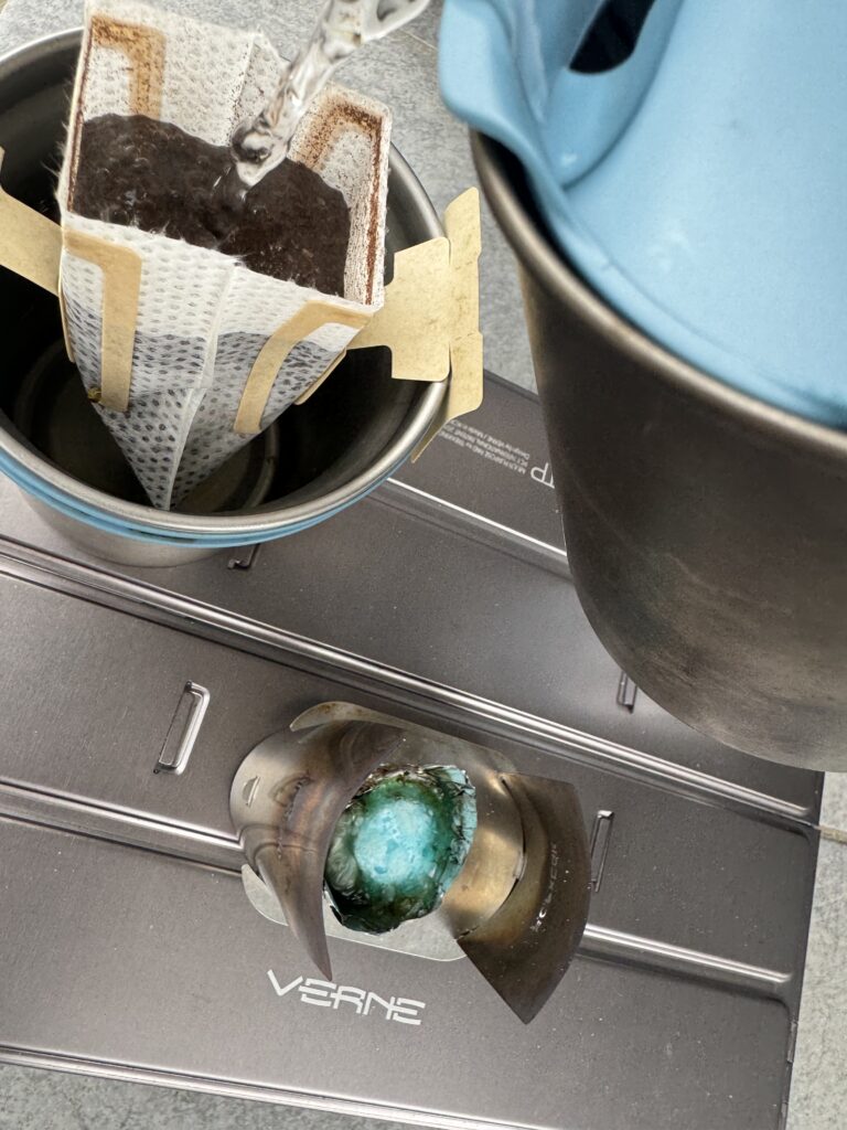 • ベルントレッキングパッド: これは折りたたみ式のソロテーブルです。軽量で持ち運びやすく、今日のキャンプではコーヒーを楽しむためのテーブルとして活躍しました。