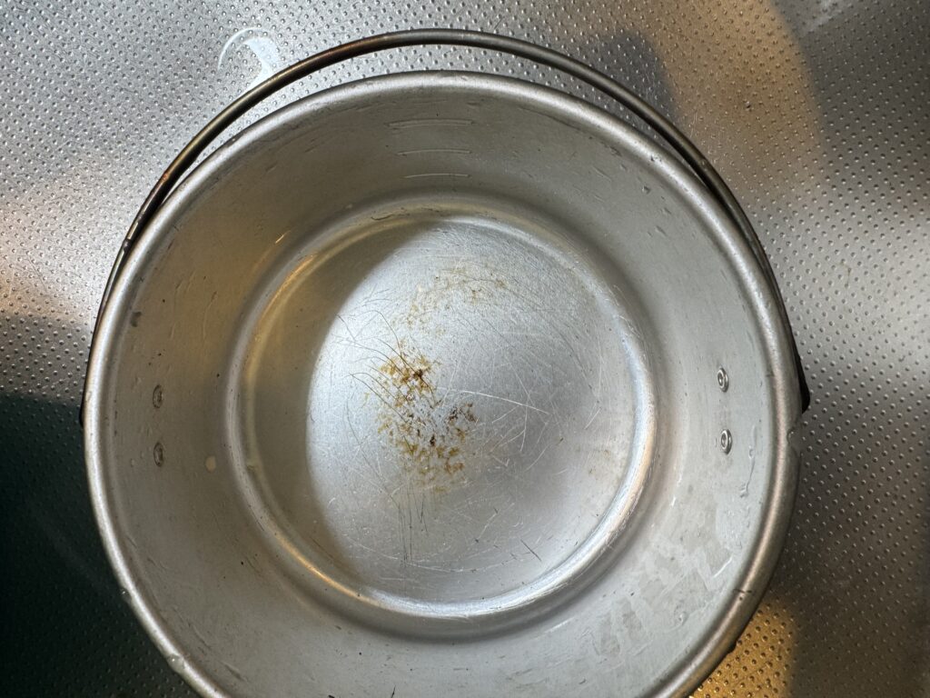 ただし、完全に煤汚れを落としてしまうと、道具の使い込まれた感じが薄れてしまうのがちょっと寂しいところです。ボクは、適度に煤汚れを残しながらも、クッカーの使用感が分かる程度に掃除しています。これによって、道具に自然な使い込まれた感が出て、焚き火キャンプの雰囲気を楽しむことができます。