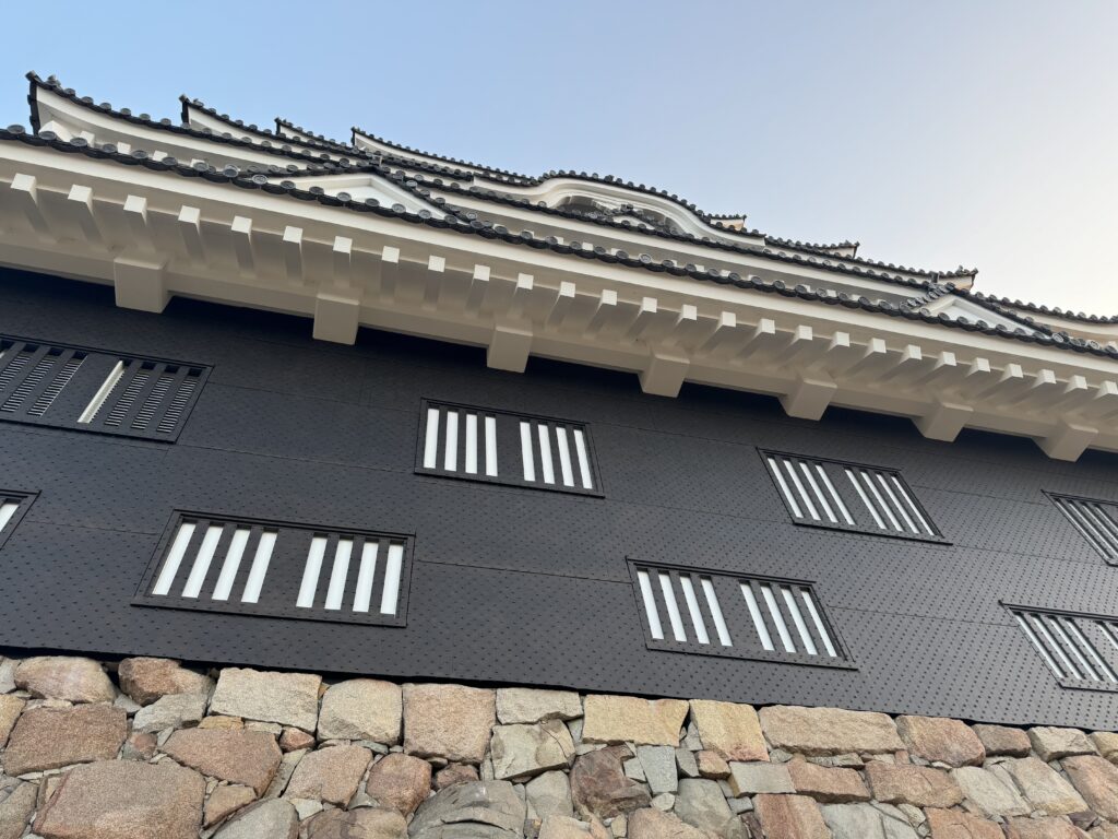 ほっこりとした旅先での出来事を楽しんだ後、福山城の見学をしました。お目当ての黒鉄板張りの城壁もしっかりチェックできて、大満足でした。福山城の外観と、黒鉄板の城壁が印象的で、じっくりとその美しさを堪能しました。こうして、旅行の終わりにまたひとつ素敵な思い出ができたことに、嬉しさと満足感が広がりました。