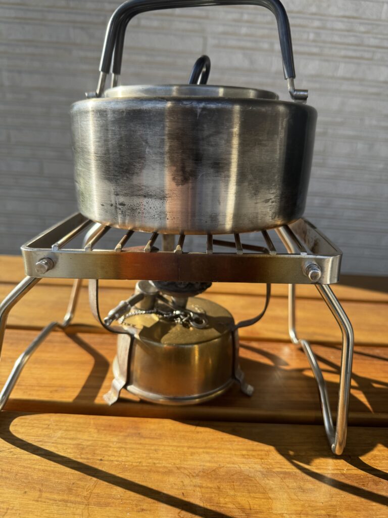 コンパクトなシングルバーナーや、アルコールストーブと合わせて使えば、キャンプでも軽快に調理ができます。五徳として使用するだけでなく、火の上で調理中のクッカーを安全に置く場所としても大活躍。