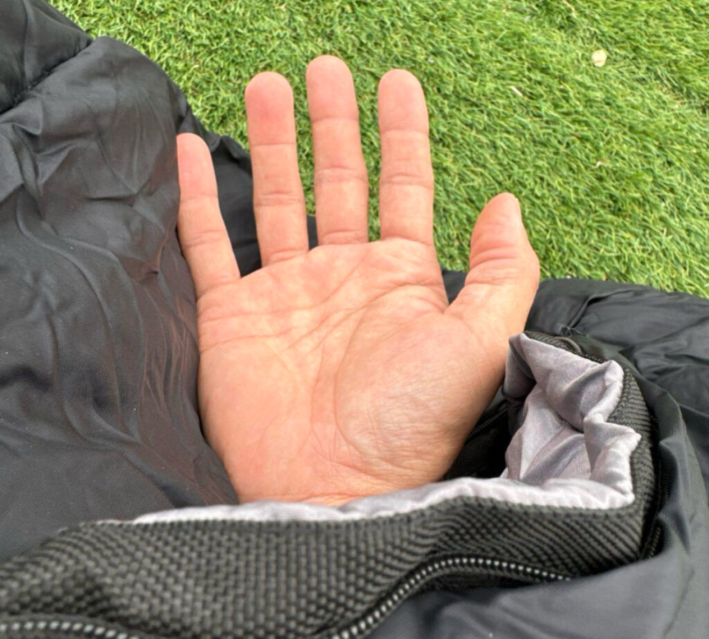 このシュラフの最大の魅力は、手や足を出せるデザインです。これにより、シュラフにくるまったままスマホで星空を撮影したり、カメラを操作したり、温かい飲み物を片手に夜空を眺めることができます。足を出せるので、ちょっとした移動や調整も快適。この自由度の高さが、星空鑑賞の時間をさらに特別なものにしてくれます。