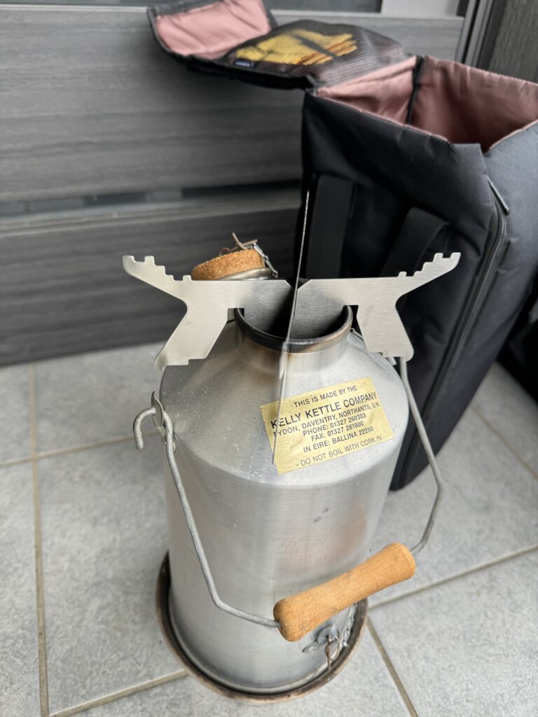 先日ご紹介の湯沸かしギア、ケリーケトルの五徳です。ご覧になってすぐわかった方は、かなりな手練ですね笑笑