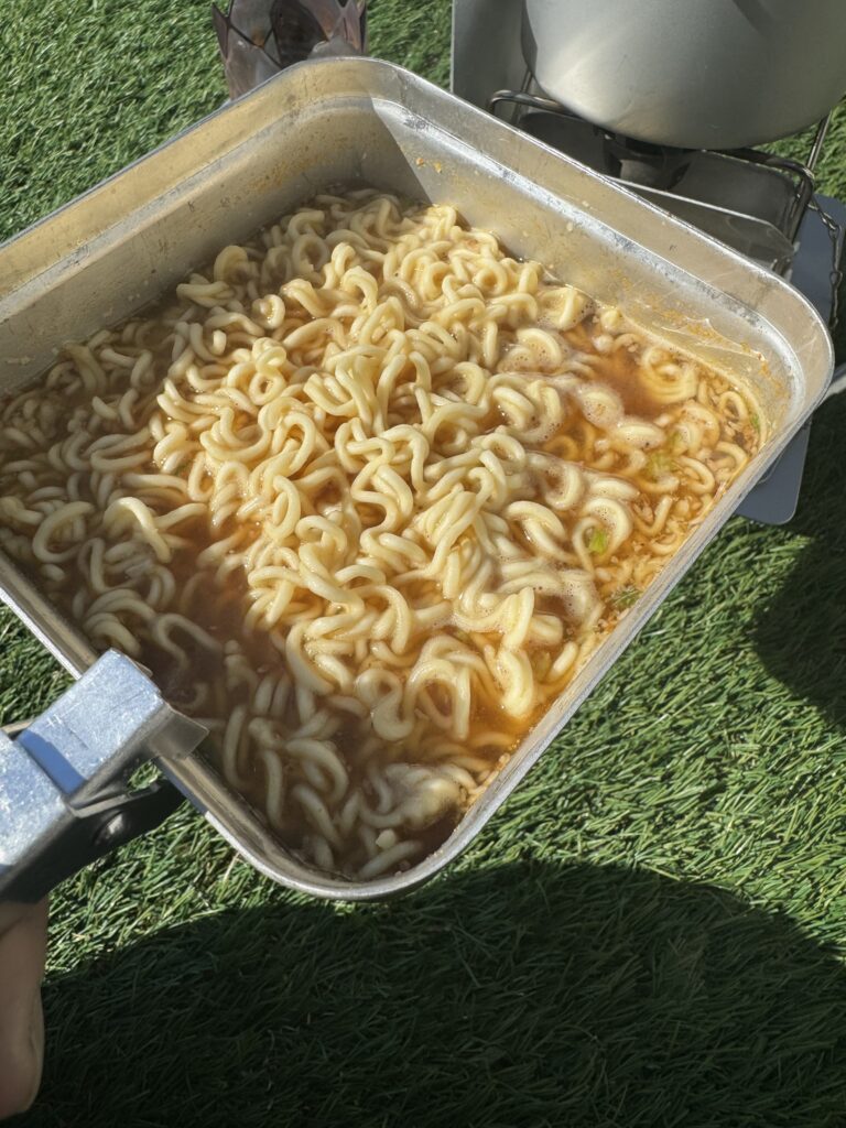 今回は市販の袋ラーメンを使いましたが、自宅の庭で作るラーメンは、いつも食べている味以上に美味しく感じます。ガソリンストーブの火力でしっかりとお湯を沸かし、麺を茹でて、スープを混ぜて。シンプルだけど、贅沢な一杯でした笑