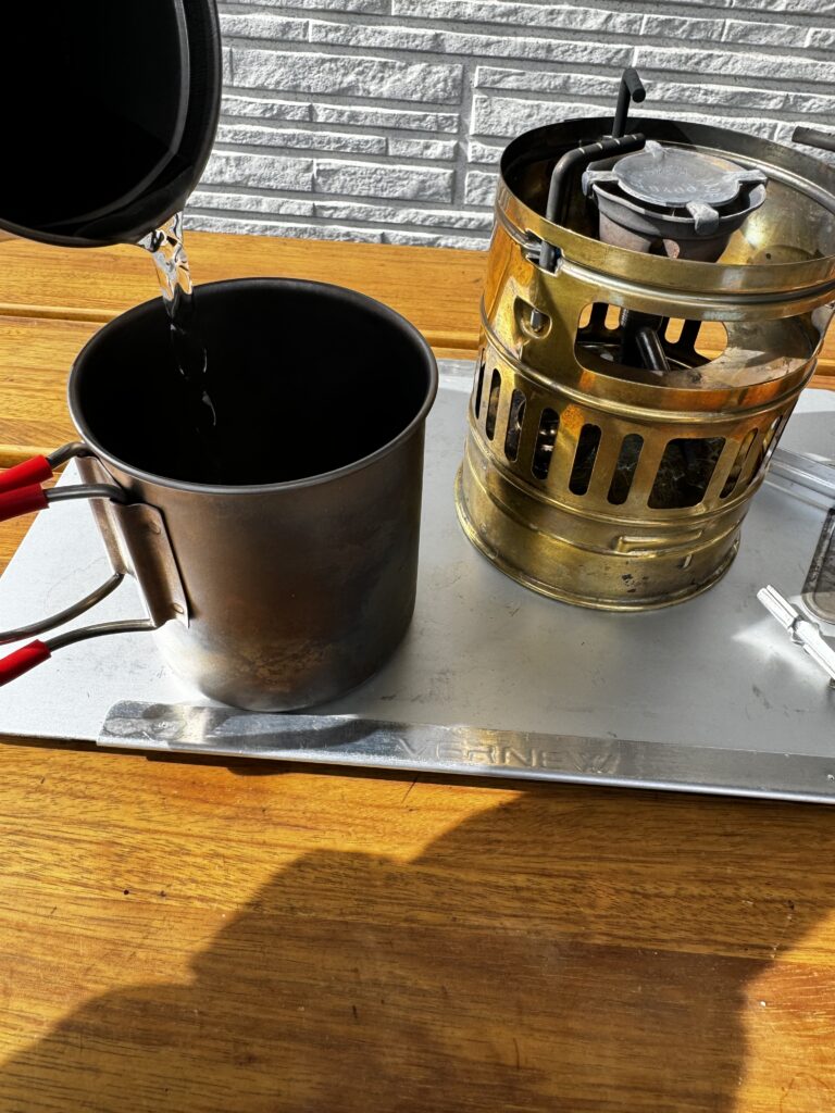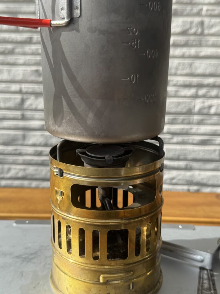 直近はアルコールストーブを使っていましたが、今日は久しぶりに**スベア123(SVEA123)**を使いました。やっぱり、このストーブは特別ですね。プレヒートから点火までの一連の動作、そして豪快な燃焼音、スベアサウンドが心地よく響きます。