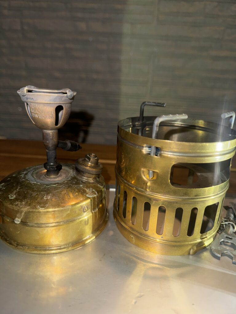 スベア123の最大の魅力は、その美しい真鍮の造形です。シンプルながらも重厚感があり、使い込むことで色合いや風合いが変わり、まるで自分だけのストーブが育っていくような感覚にとても惹かれました。他のストーブでは味わえない、真鍮特有の温かみが感じられ、手に取るたびにその質感にうっとりします。