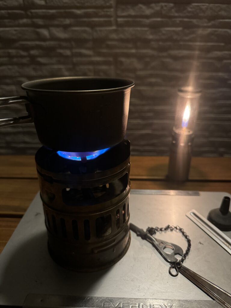 ↓アルコールでプレヒートして、燃焼させます