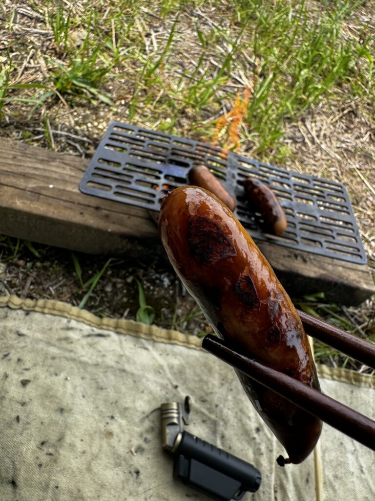 焚き火の香りとともに味わうソーセージは、スーパーの安いものでしたが、外メシ効果もあいまって、旨さにブーストかかっていました笑