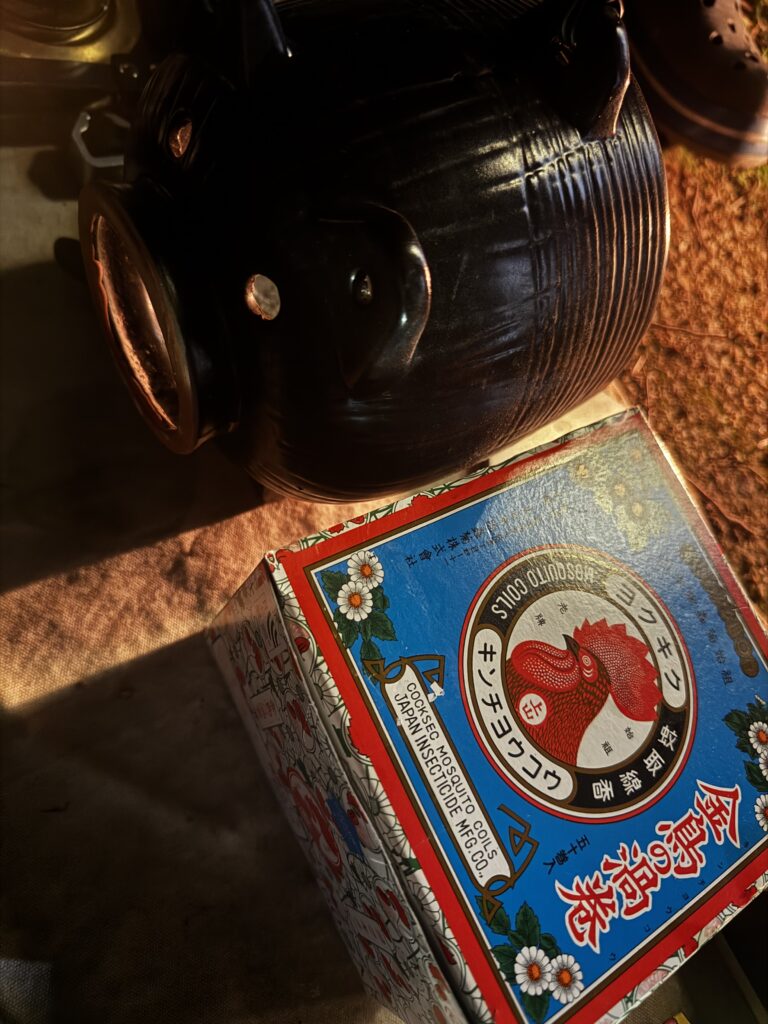 そんな時にキンチョウ蚊取り線香と、趣のある蚊遣豚があると、実用と雰囲気の両方を楽しめます。