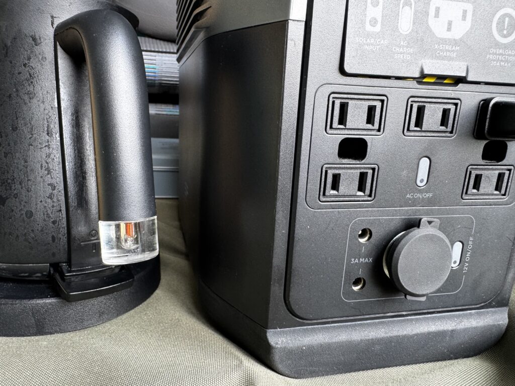と思ったら、ポータブル電源のメインスイッチは入れたけど、AC電源スイッチを入れていなかったという初歩的ミス。気を取り直してACもオン、無事に湯沸かしスタート。