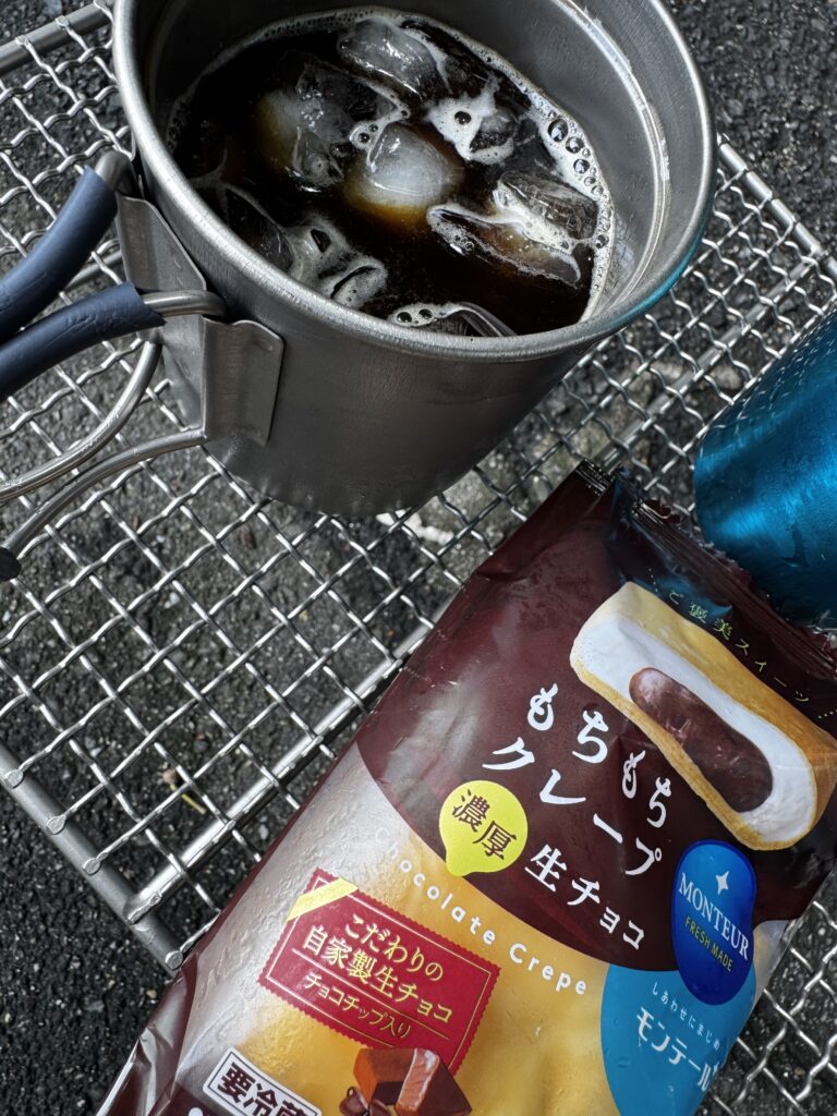 さらに、スティックコーヒーを淹れて、持ってきた氷を入れてアイスコーヒーに。途中で買ってきたデザートを食べながら、動画を観てまったり。