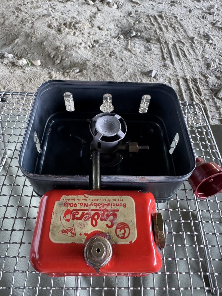 ガソリンストーブ、ケトル、燃料、ライター、椅子…と、ちゃちゃっと準備して出発。