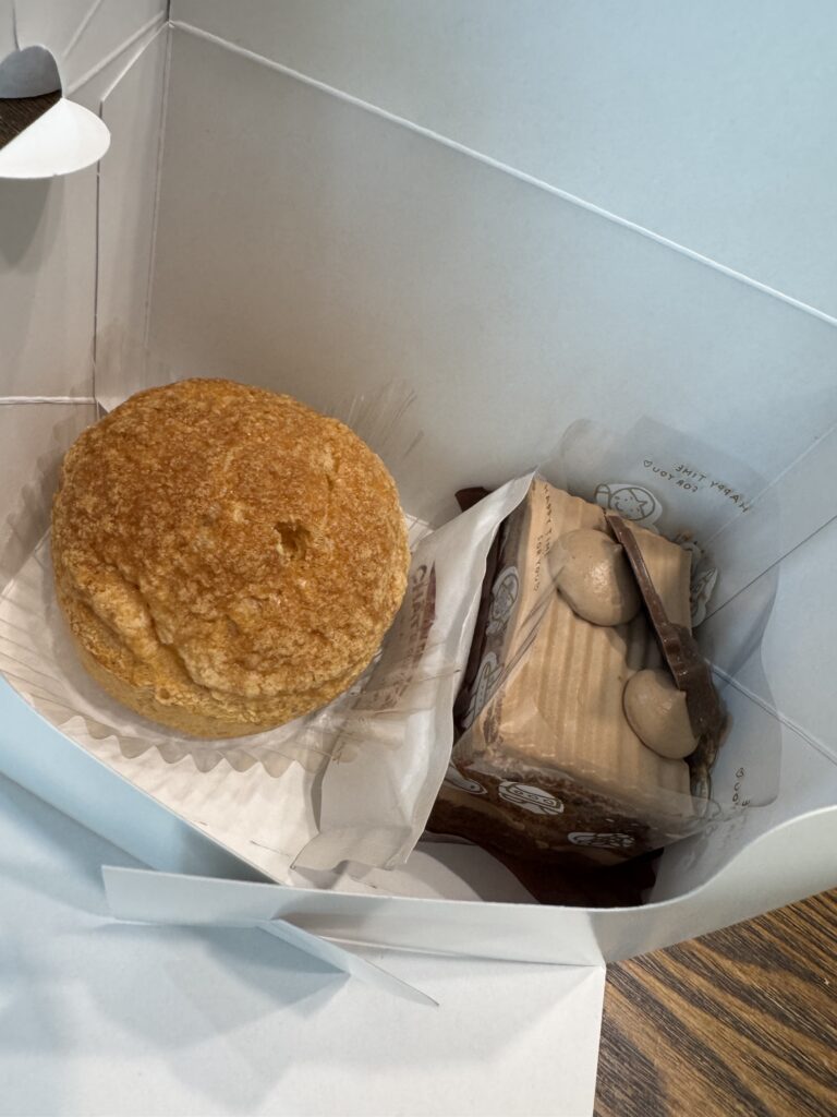 この日は、**シュークリーム(200円)とチョコケーキ(120円)**を購入。