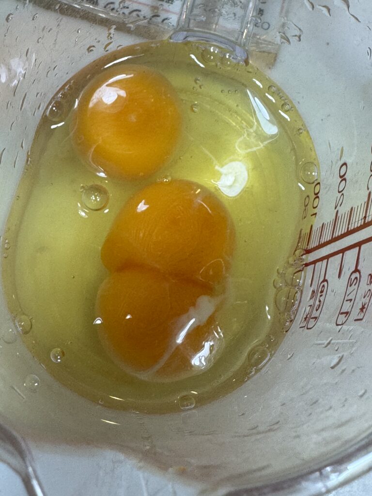 調べてみると、双子卵は鶏が若いときに多く見られるそうです。