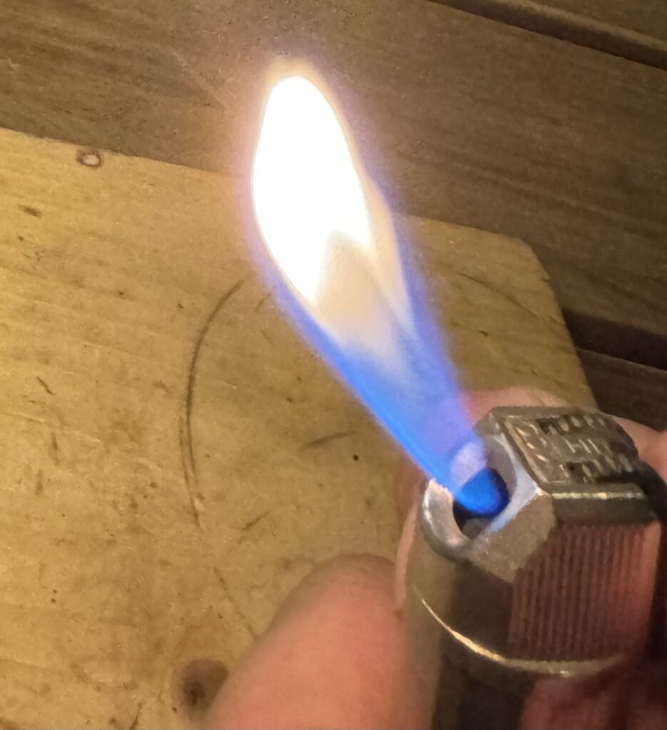手元に届いた実物は、古さはあるもののまだまだ現役。市販のライター用ガスがそのまま使えるので、燃料の心配もありません。点火して、しっかり火がつく瞬間はやっぱり嬉しいものです。