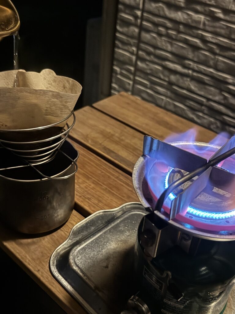 ここ最近は、玄関でコールマンのストーブを使ってコーヒーを淹れる日が続きました。