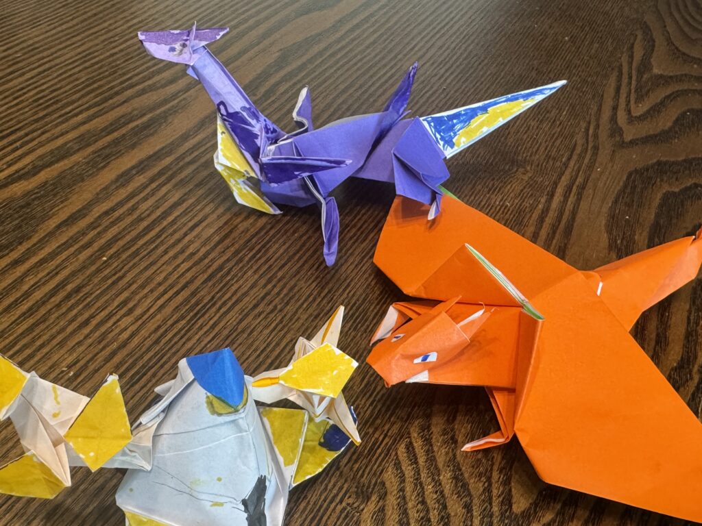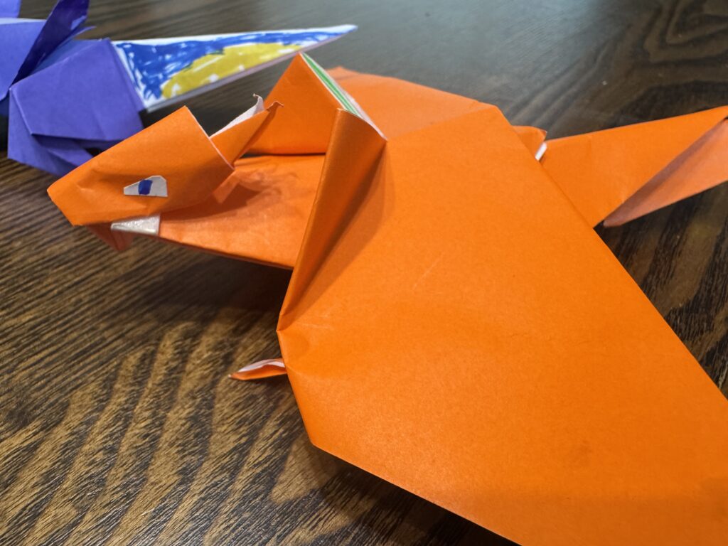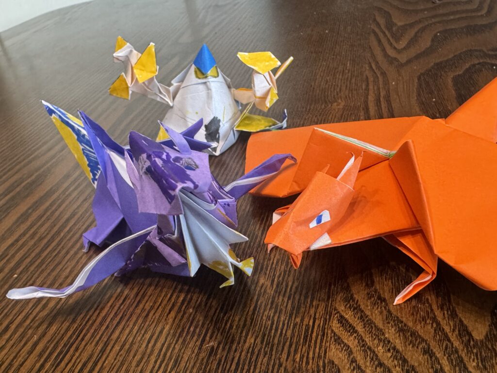 先日、息子(小1)が折り紙でポケモンを作りました。リザードンと、ミライドン、そしてテツノなんとか……(ボクは詳しくないので名前を聞いてもすぐ忘れてしまいます笑)。でも、とにかく一生懸命折っていて、出来上がったものを見たら本当に上手にできていて驚きました。