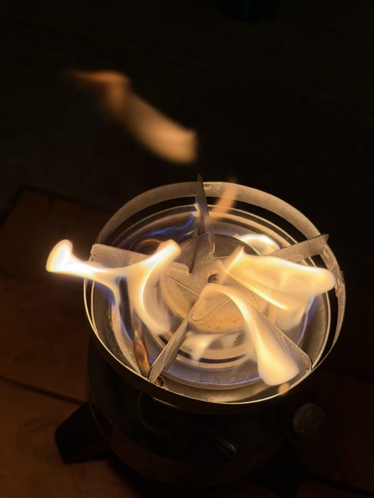 ↑アルコールでしっかり予熱後、燃料を出すと、、