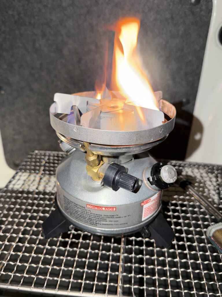 操作の簡単さも特徴です。コールマン特有のレバーやバルブの操作性はそのままで、多少プレヒートが雑でも炎上することはありません。安定して火力を確保できます。