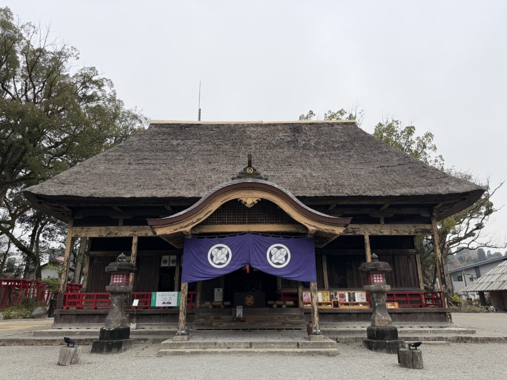 茅葺屋根の社殿は落ち着いた雰囲気で、境内全体にやわらかな空気が流れていました。国宝と聞くと少し身構えてしまいますが、実際に立ってみると不思議と肩の力が抜ける場所です。朝の時間帯だったこともあり、静かに参拝できたのも良かったです。