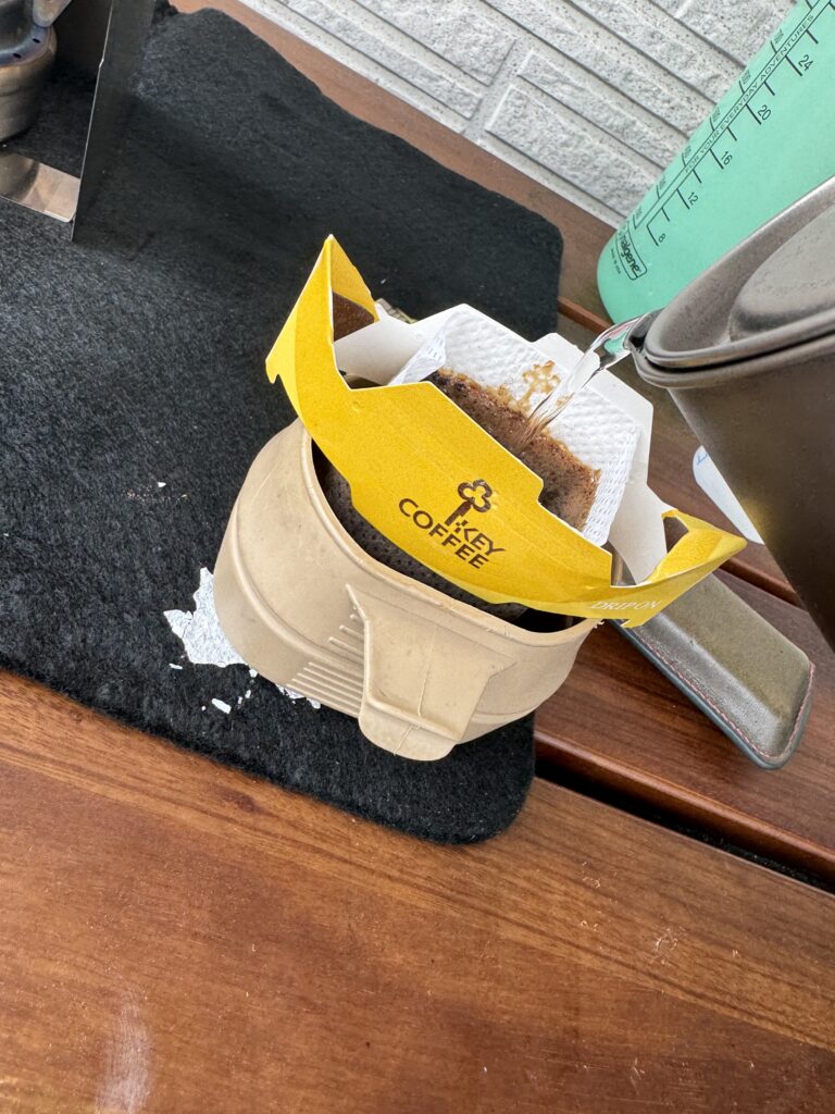 1. エバニューチタンアルコールストーブとチタンマグポット500で香り高いペルー豆のドリップコーヒーを楽しむ
