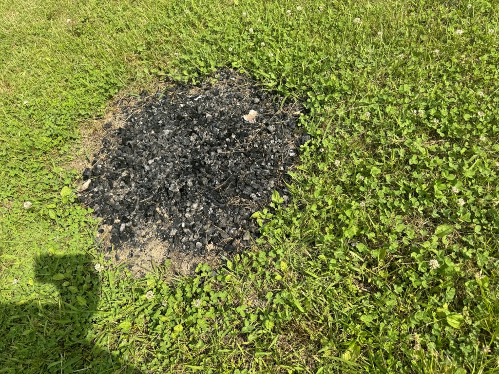 焚き火跡の炭ゴミと放置ゴミこんなにありました。一部草、土も含まれていますが大量です↓